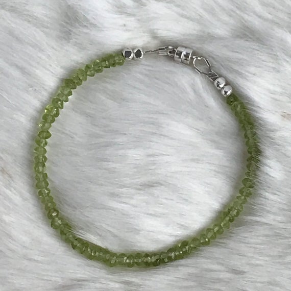 At a Great Price3mm Genuine Peridot and Karen Hill Tribe sterling silver bracelet with magnetic clasp Code- WAR6116