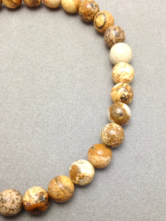 At a Great Price6MM Picture Jasper and Brass Bead Stretch Bracelet For GRounding, Protection Code- WAR6178