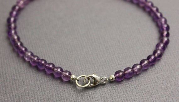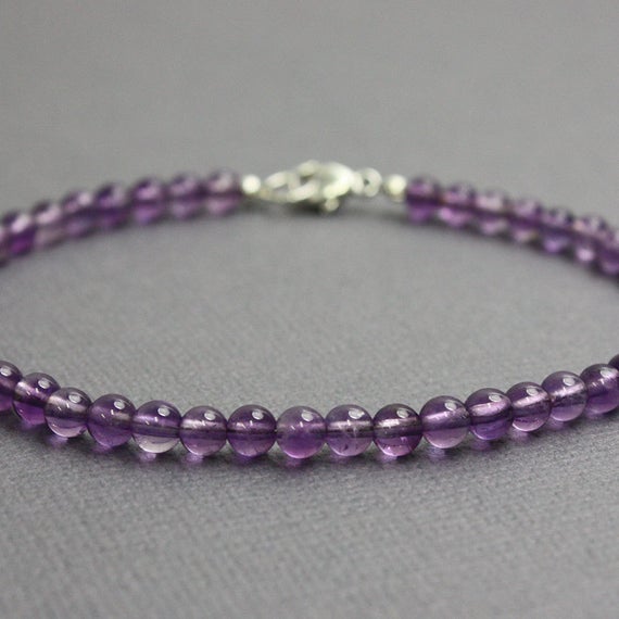 At a Great Price925 Steling Silver Anniversary Gift 4 mm Stracking Purple Amethyst Bracelet Round, Faceted 7" for mens, womens, GF, BF, Adults.