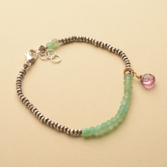 925 steling silver Anxiety Gemstone 3-4 mm Stracking green Chrysoprase Bracelet Rondelle, Faceted 7" for mens, womens, GF, BF, Adults.