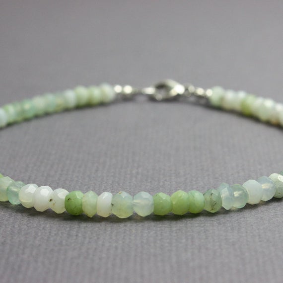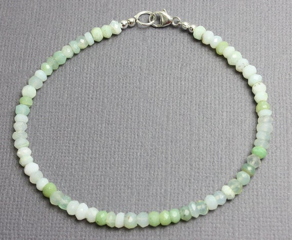 At a Great Price925 Steling Silver Anxiety Gemstone 3-4 mm Stracking green Green Tanzanian Opal Bracelet Rondelle, Faceted 7" for mens, womens, GF, BF, Adults.
