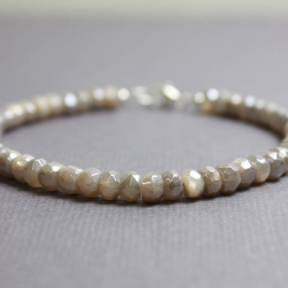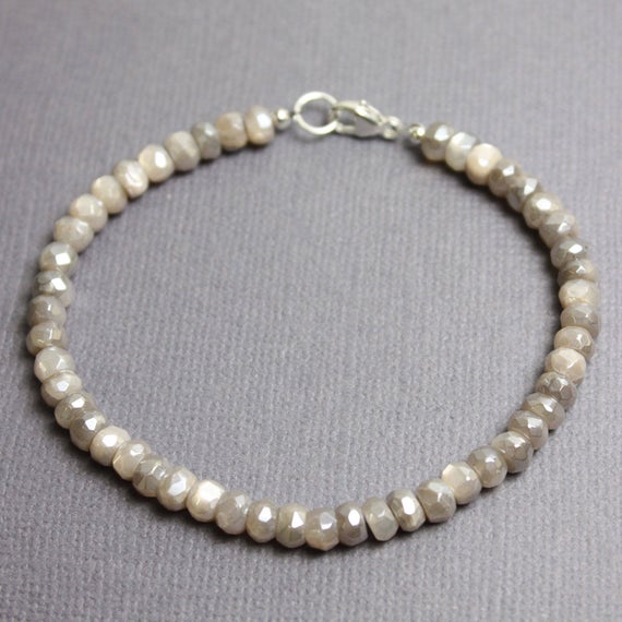At a Great Price925 Steling Silver Bridesmaid Jewelry 4 mm Stracking grey Grey Moonstone Bracelet Rondelle, Faceted 7" for mens, womens, GF, BF, Adults.