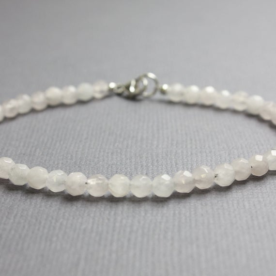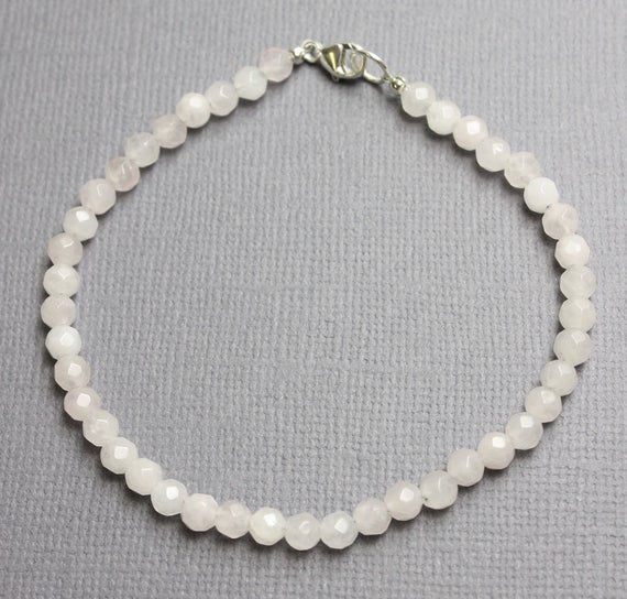At a Great Price925 Steling Silver Handmade Beaded 4 mm Stracking white Crystal Quartz Bracelet Rondelle, Faceted 7" for mens, womens, GF, BF, Adults.
