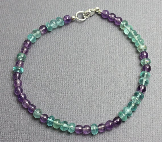 At a Great Price925 Steling Silver love beach youth 4 mm Stracking green & blue Apatite and Amethyst Bracelet Rondelle, Smooth 7" for mens, womens, GF, BF, Adults.