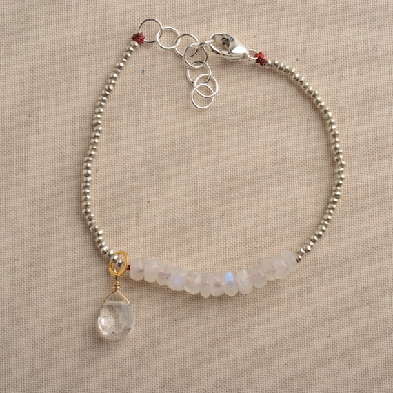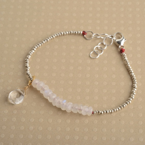 925 steling silver memorial gift 3-4 mm Stracking white Moonstone Bracelet Rondelle, Faceted 7" for mens, womens, GF, BF, Adults.