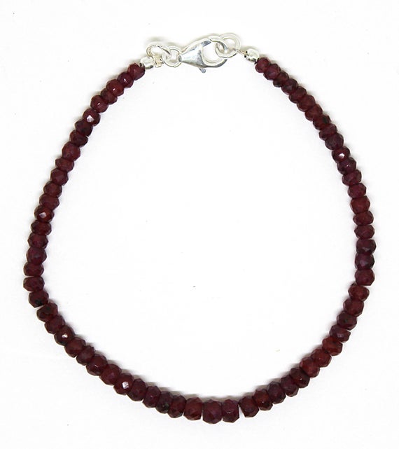 At a Great Price925 steling silver Positive Energy 3-4.5 mm Stracking red Ruby Bracelet Rondelle, Faceted 7" for mens, womens, GF, BF, Adults.
