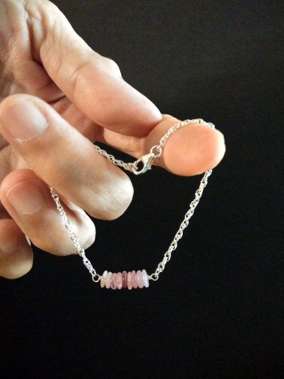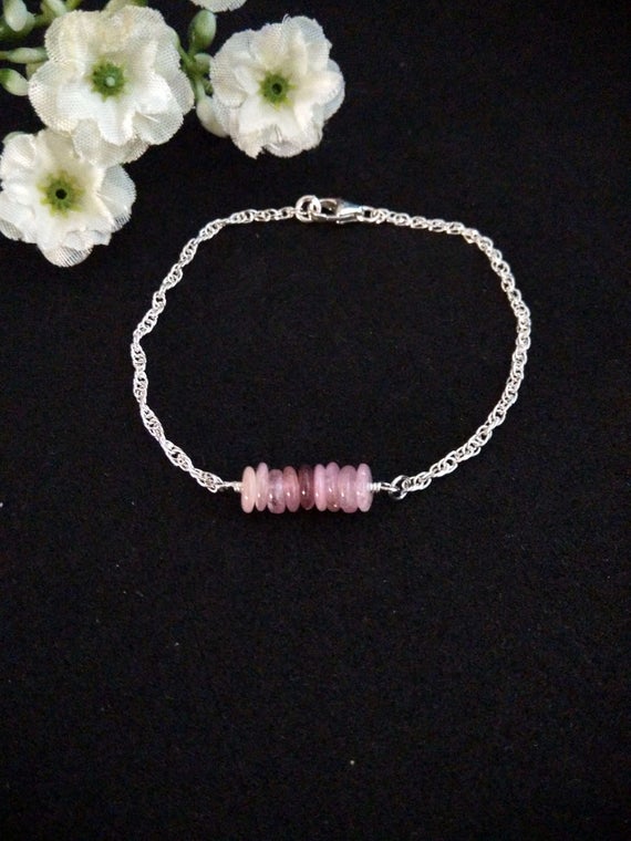 At a Great Price925 Steling Silver Wholesale 1x4 mm Stracking pink Pink Tourmaline Bracelet Rondelle, Smooth 7" for mens, womens, GF, BF, Adults.