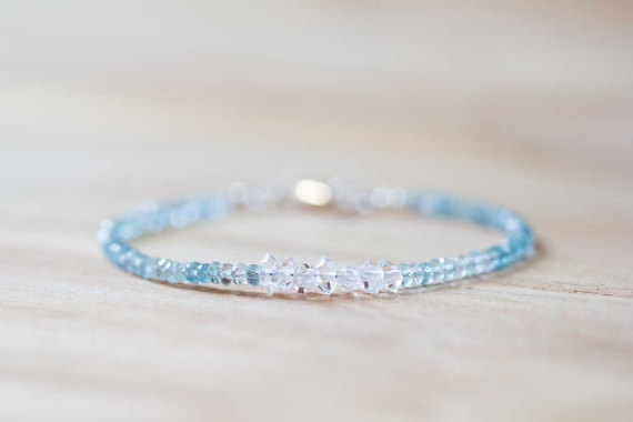 At a Great Price925 sterling silver Anniversary Gift 3-3.5 mm Blue Aquamarine & Herkimer Diamonds stacking Bracelet Rondelle , Faceted 18cm for mens, womens, gf, bf and adults.