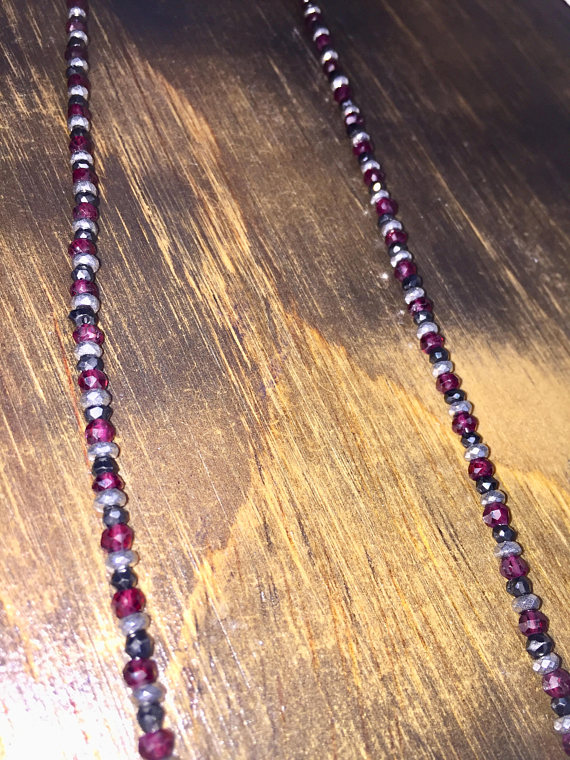 At a Great Price925 sterling Silver Anniversary Gift 3-4mm stacking Multi Garnet, Black Spinel, Hematite Necklace Rondelle, Faceted 34" for mens, womens, gf, bf & Adult.