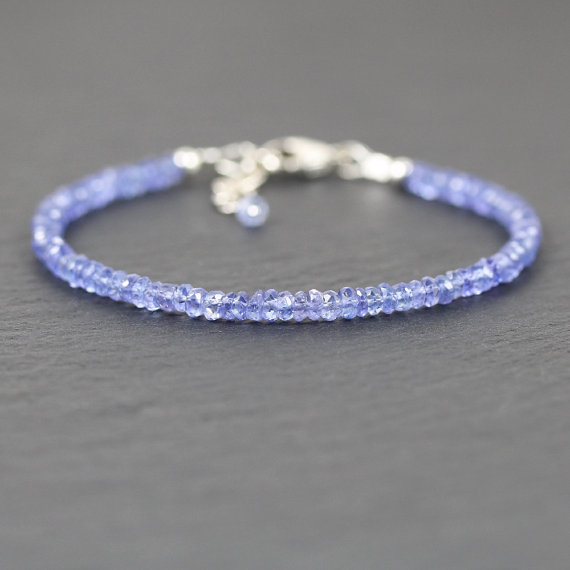 925 sterling Silver Anniversary Gift 3.5mm stacking Blue Tanzanite Bracelet Rondelle, Faceted 7" for mens, womens, gf, bf & Adult.