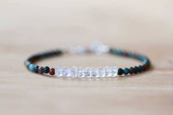 At a Great Price925 sterling silver Anniversary Gift 4-5mm Multi Colour Bloodstone & Rainbow Moonstone stacking Bracelet Round , Smooth 18cm for mens, womens, gf, bf and adults.