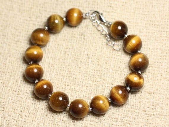 At a Great Price925 sterling Silver Anniversary Gift Silver Helling 10mm stacking Multi Tiger eye Bracelet Round, Smooth 7.5" for mens, womens, gf, bf & Adult.