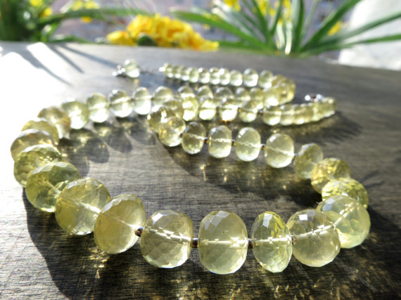 At a Great Price925 sterling Silver Anniversary Gift Silver Helling 8-11mm stacking Yellow Citrine Necklace Rondelle, Faceted 17" for mens, womens.