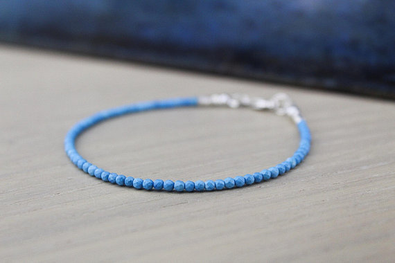 At a Great Price925 sterling Silver Anxiety Gemstone 2mm stacking Blue Turquoise Bracelet Round, Faceted 7" for mens, womens.