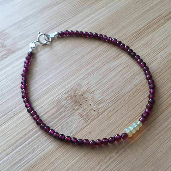At a Great Price925 sterling Silver Anxiety Gemstone 2mm stacking Pink & White Ethiopian Opal and Garnet Bracelet Round, Smooth 7" for mens, womens.