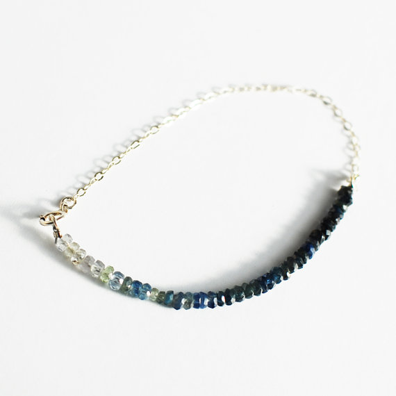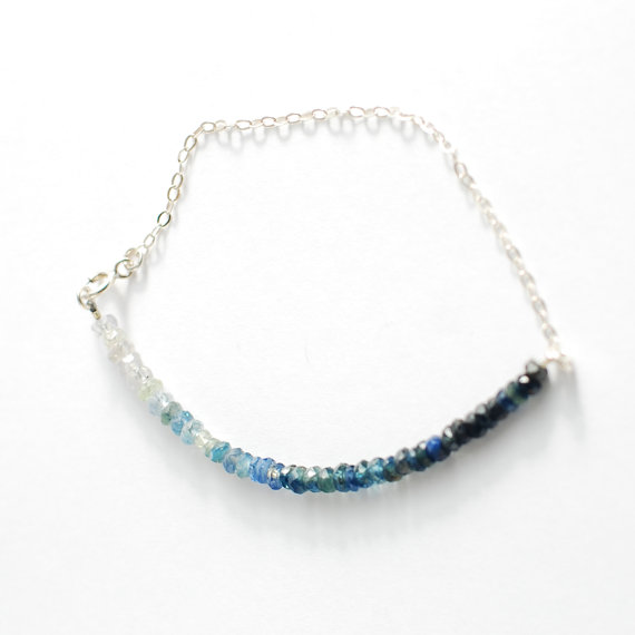 At a Great Price925 sterling Silver Anxiety Gemstone 3-4mm stacking Blue Blue Sapphire Bracelet Rondelle, Faceted 7" for mens, womens, gf, bf & Adult.