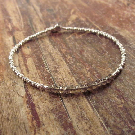 925 sterling silver Anxiety Gemstone 3.5mm Brown Smoky Quartz stacking Bracelet Rondelle, Faceted 18cm for mens, womens, gf, bf and adults.