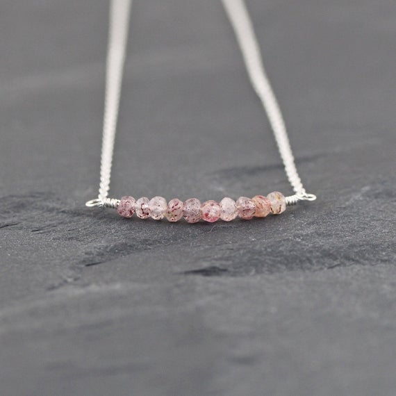 925 sterling Silver Anxiety Gemstone 3.5mm stacking Pink Super Seven Melody Necklace Rondelle, Faceted 16" for mens, womens, gf, bf & Adult.