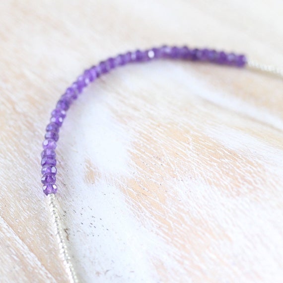At a Great Price925 sterling Silver Anxiety Gemstone 3.5mm stacking Purple Amethyst & Czech Charlotte Necklace Round, Faceted 16" for mens, womens, gf, bf & Adult.