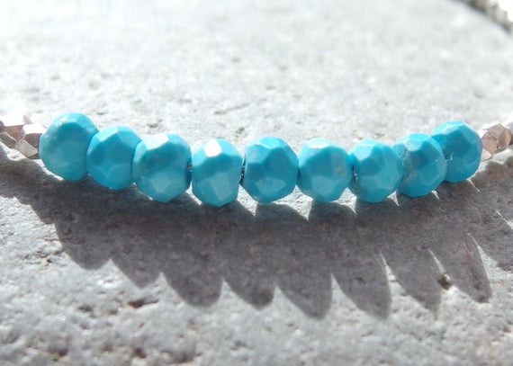 At a Great Price925 sterling silver Anxiety Gemstone 3mm Sky Blue Turquoise stacking Bracelet Rondelle, Faceted 18cm for mens, womens, gf, bf and adults.