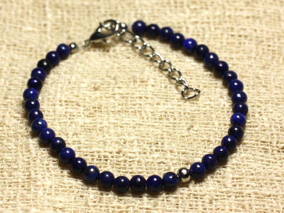 At a Great Price925 sterling Silver Anxiety Gemstone Silver Helling 4mm stacking Blue Lapis Lazuli Bracelet Round, Smooth 7" for mens, womens, gf, bf & Adult.