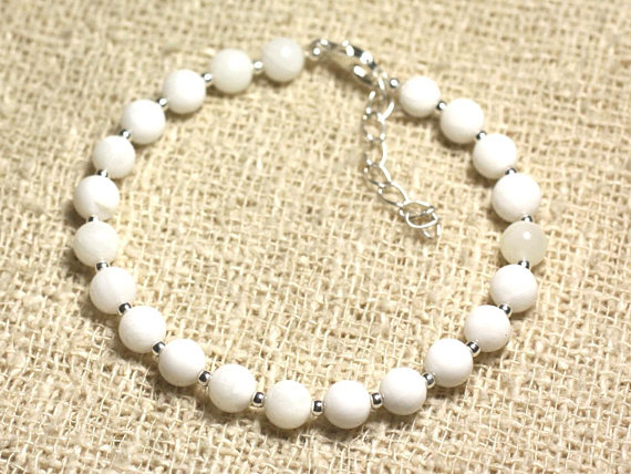 At a Great Price925 sterling Silver Anxiety Gemstone Silver Helling 6mm stacking White Pearl Bracelet Round, Smooth 7" for mens, womens, gf, bf & Adult.