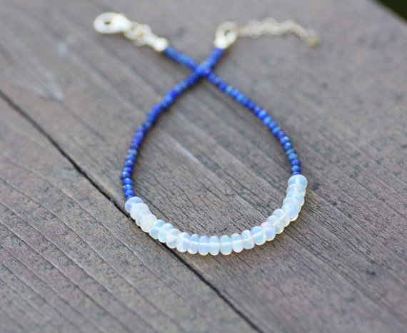 At a Great Price925 sterling Silver Anxiety Relief Calming 2-4mm stacking Blue & White Natural Ethiopian Wello Opal and Lapis Lazuli Bracelet Round & Rondelle, Faceted & Smooth 7" for mens, womens, gf, bf & Adult.