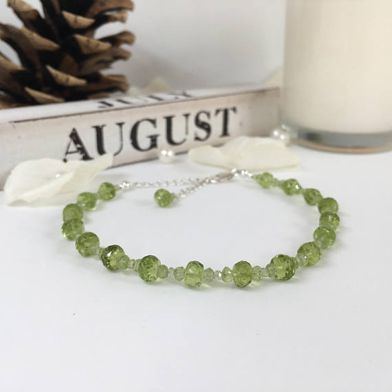 At a Great Price925 sterling Silver Anxiety Relief Calming 2-6mm stacking Green Peridot Bracelet Rondelle, Faceted 7" for mens, womens, gf, bf & Adult.