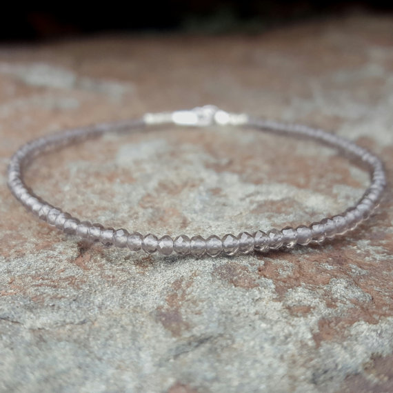 At a Great Price925 sterling silver Anxiety Relief Calming 2.5mm Gray Gray Moonstone stacking Bracelet Round, Faceted 18cm for mens, womens, gf, bf and adults.