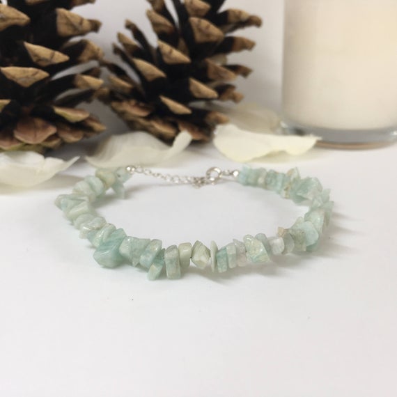 At a Great Price925 sterling Silver Anxiety Relief Calming 2x1-9x1mm stacking Blue Amazonite Bracelet Chips, Smooth 7" for mens, womens, gf, bf & Adult.