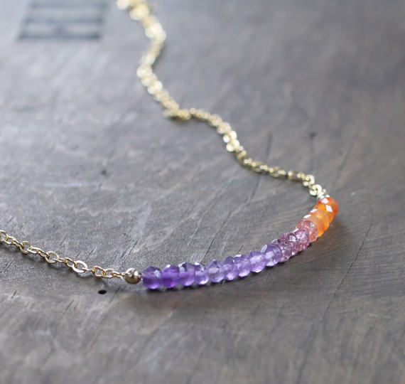 At a Great Price925 sterling silver Anxiety Relief Calming 3-3.5mm Multi Colour Ombre Carnelian, Spinel & Amethyst stacking Necklace Rondelle, Faceted 17 Inch for mens, womens, gf, bf and adults.