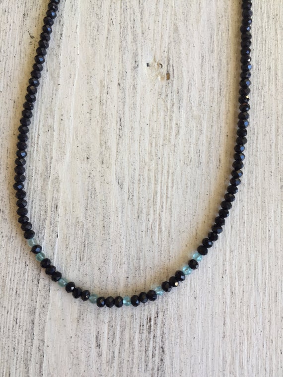 At a Great Price925 sterling Silver Anxiety Relief Calming 3-4mm stacking black & Blue Black Spinel & Apatite Necklace Rondelle, Faceted 17" for mens, womens, gf, bf & Adult.