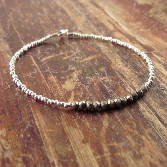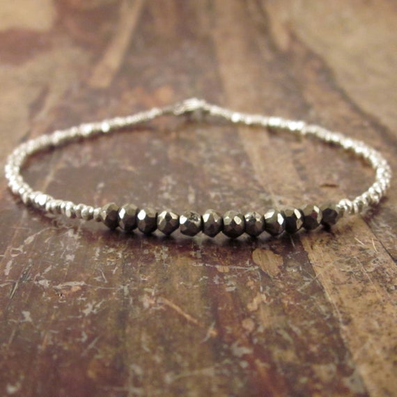 At a Great Price925 sterling silver Anxiety Relief Calming 3.5mm black Pyrite stacking Bracelet Round, faceted 18cm for mens, womens, gf, bf and adults.