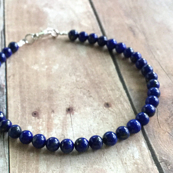At a Great Price925 sterling silver Anxiety Relief Calming 4mm Blue Lapis Lazuli stacking Bracelet Round, Smooth 18cm for mens, womens, gf, bf and adults.