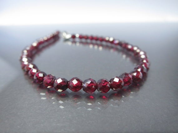 At a Great Price925 sterling Silver Anxiety Relief Calming 4mm stacking Red Red Garnet Bracelet Round, Faceted 7" for mens, womens.