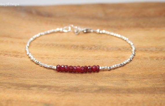 At a Great Price925 sterling Silver Anxiety Relief Calming Silver Helling 3mm stacking Red Ruby Bracelet Rondelle, Faceted 7" for mens, womens, gf, bf & Adult.