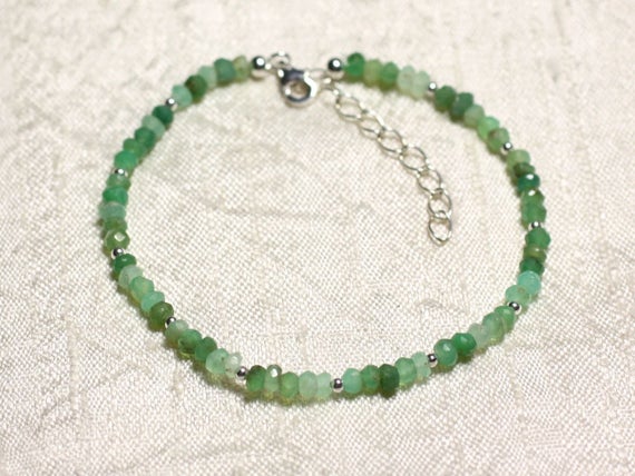 At a Great Price925 sterling Silver Anxiety Relief Calming Silver Helling 3mm Stracking Green Chrysoprase Bracelet Rondelle, Faceted 7" for mens, womens, gf, bf & Adult.