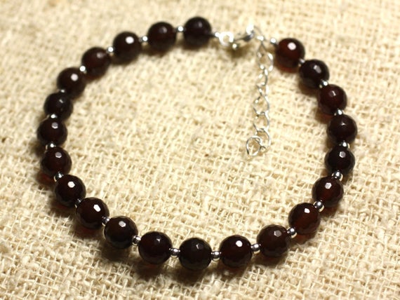 At a Great Price925 sterling Silver Anxiety Relief Calming Silver Helling 6mm stacking Brown Brown Agate Bracelet Round, Faceted 7" for mens, womens, gf, bf & Adult.