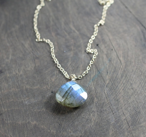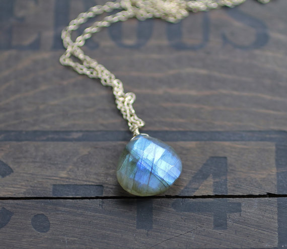 925 sterling silver Artisan Loose 14mm Gray Labradorite stacking Necklace Pear, Faceted 17 Inch for mens, womens, gf, bf and adults.