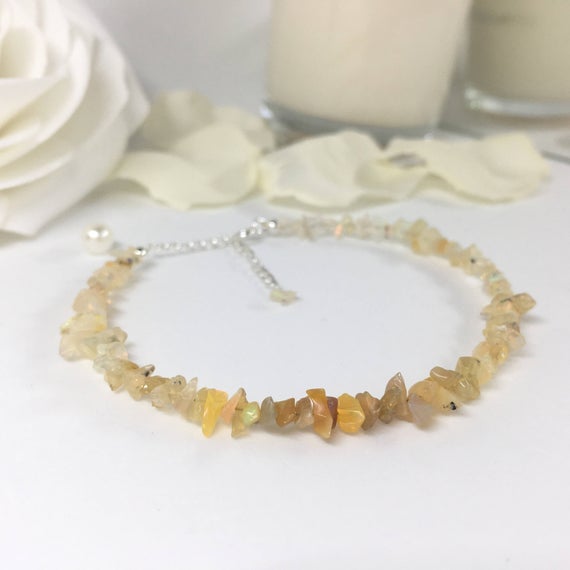 At a Great Price925 sterling Silver Artisan Loose 1x1-8x1mm stacking Yellow Ethiopian Opal Bracelet Nugget, Faceted 7" for mens, womens, gf, bf & Adult.