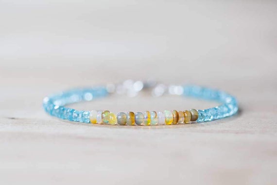 At a Great Price925 sterling silver Artisan Loose 3.5-4mm Multi Colour Aqua Apatite & Ethiopian Opal stacking Bracelet Rondelle, Smooth 18cm for mens, womens, gf, bf and adults.