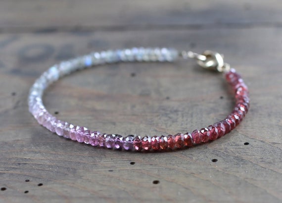 At a Great Price925 sterling silver Artisan Loose 3.5mm Multi Colour Spinel Labradorite & Garnet stacking Bracelet Rondelle, Faceted 18cm for mens, womens, gf, bf and adults.
