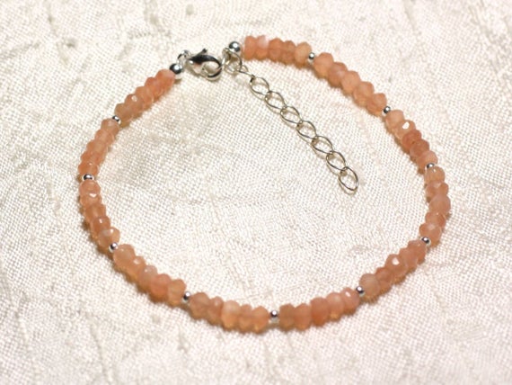 At a Great Price925 sterling Silver Artisan Loose Silver Helling 3mm stacking Pink & Orange Moonstone Bracelet Rondelle, Faceted 7" for mens, womens, gf, bf & Adult.