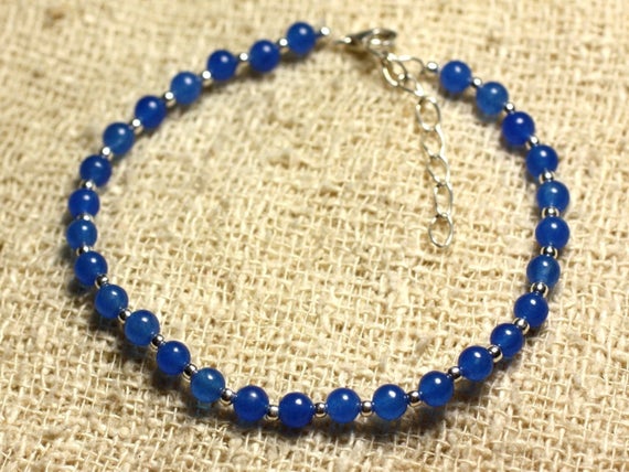 At a Great Price925 sterling Silver Artisan Loose Silver Helling 4mm Stracking Blue Jade blue Bracelet Round, Smooth 7" for mens, womens, gf, bf & Adult.