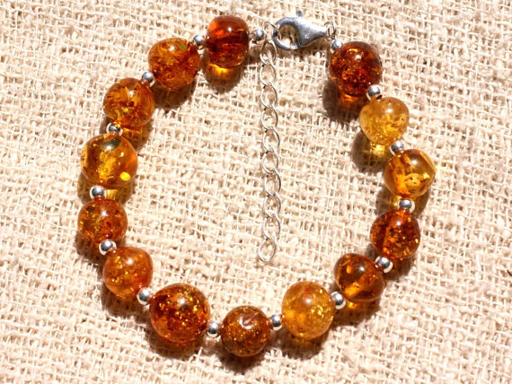 At a Great Price925 sterling Silver Artisan Loose Silver Helling 8-10mm Stracking Yellow honey and Cognac Bracelet Rondelle, Smooth 7" for mens, womens, gf, bf & Adult.