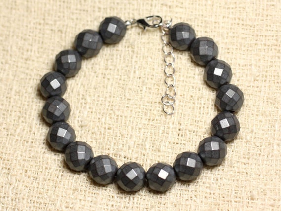 At a Great Price925 sterling Silver Blush Jewelry 10mm Stracking Black Hematite Bracelet Round, faceted 7.5" for mens, womens, gf, bf & Adult.