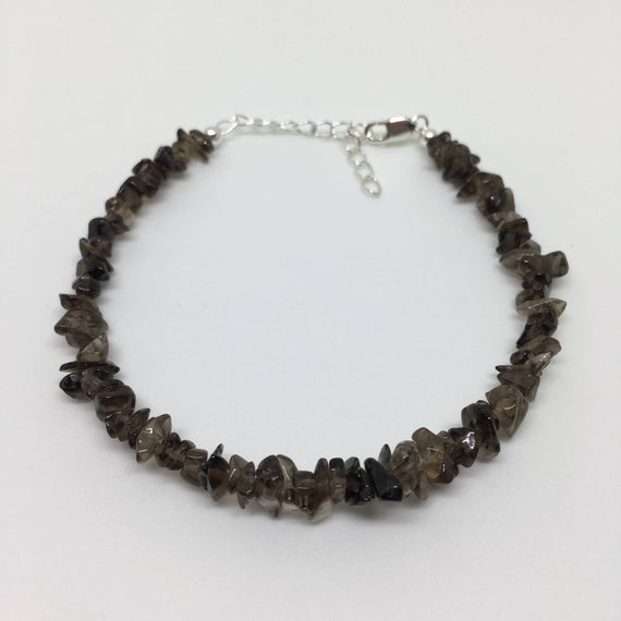 At a Great Price925 sterling Silver Blush Jewelry 2x1-8x2mm stacking Brown Smokey Quartz Bracelet Chips, Smooth 7" for mens, womens, gf, bf & Adult.