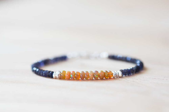 925 sterling silver Blush Jewelry 3.5-4mm Multi Colour Iolite & Welo Opals stacking Bracelet Rondelle, Faceted 18cm for mens, womens, gf, bf and adults.