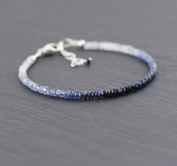 At a Great Price925 sterling Silver Blush Jewelry 3.5mm stacking Blue Sapphire Bracelet Rondelle, Faceted 7" for mens, womens, gf, bf & Adult.