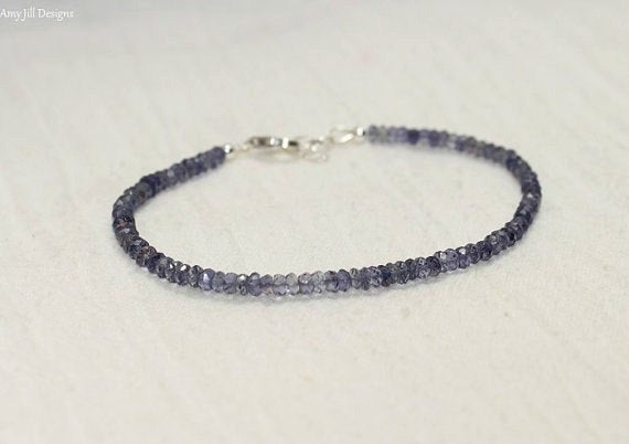 At a Great Price925 sterling Silver Blush Jewelry 3mm stacking Blue Iolite Bracelet Rondelle, Faceted 7" for mens, womens, gf, bf & Adult.